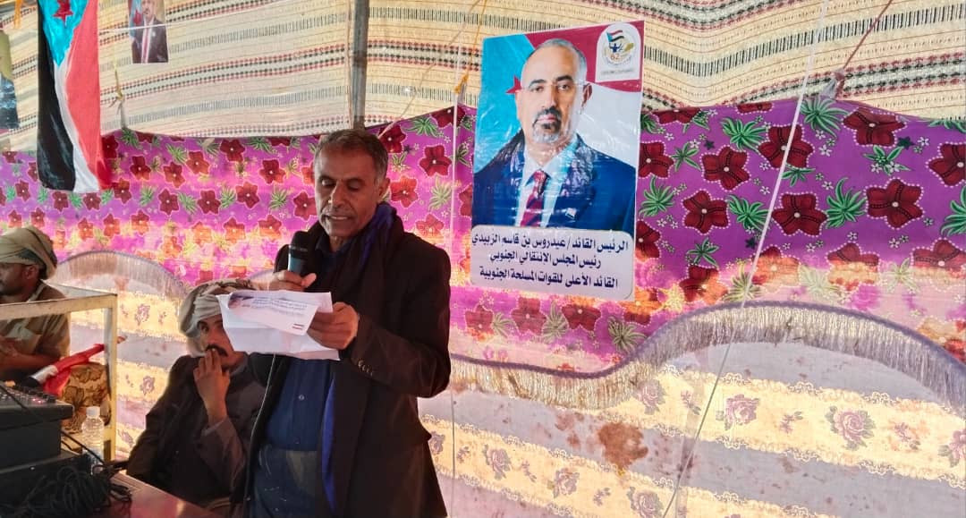 وفي ساحة الاعتصام، قدّم مدير الإدارة السياسية في الهيئة التنفيذية للقيادة المحلية للمجلس الانتقالي الجنوبي بمحافظة شبوة، صالح بامعيلا، نشرة سياسية توعوية استعرض فيها آخر المستجدات على الساحة الجنوبية والإقليمية.