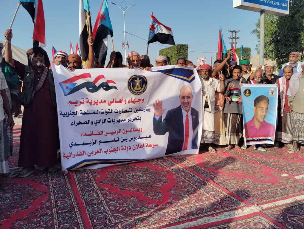 شهد مخيم الاعتصام المفتوح في مدينة سيئون بمحافظة حضرموت، اليوم الأربعاء، حفلًا خطابيًا جماهيريًا، تزامنًا مع وصول وفود من وجهاء وأهالي مديرية تريم إلى المخيم، للمطالبة بإعلان دولة الجنوب العربي، ومباركة الانتصارات التي حققتها القوات المسلحة الجنوبية في تحرير الوادي والصحراء.