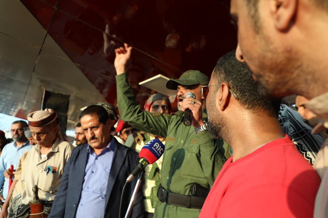 ورددت جماهير أبين وأبناء الجنوب في ساحة الاعتصام شعارات الغضب والإدانة تجاه سياسات وتوجهات رئيس مجلس القيادة الرئاسي المدعو رشاد العليمي، معتبرين أنها تستهدف إرادة شعب الجنوب وتطلعاته المشروعة في استعادة دولته وهويته وسيادته الوطنية.
